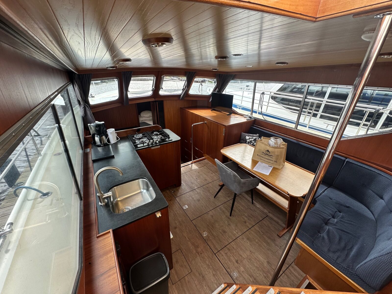 The saloon has a spacious and comfortable lounge, radio and television with automatic satellite receiver. From the saloon you have a wonderful wide view because of the big windows.